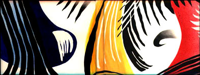 stencils using acrylic inks, gold tooling. Hand-sewn on linen tapes