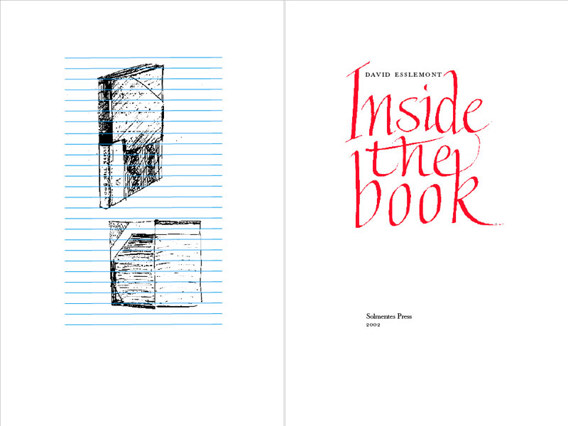 Additional material is tipped-in and includes a Thomas Bewick wood engraving, a page showing comparative type widths and samples of an inkjet print and paste paper, and a facsimile of an envelope with ideas for Inside the Book. Trial settings of title pages, chapter openings and text pages from Desmond Levista"s biblio novel The Missing Pages, are used to demonstrate how the choice of typeface, and layout affect the appearance of the page. These exclusive extracts are contiguous and make entertaining reading.