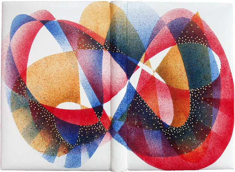 10 copies in a special binding by David Esslemont: hand-sewn on linen tapes with hand-sewn headbands, leather jointed endpapers, and bound in full white alum-tawed goatskin with a design in colour created with acrylic inks, gold tooling. Housed in a felt-lined cloth-covered drop-back box – out of print.
